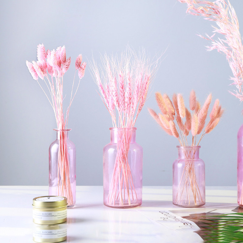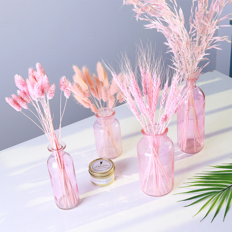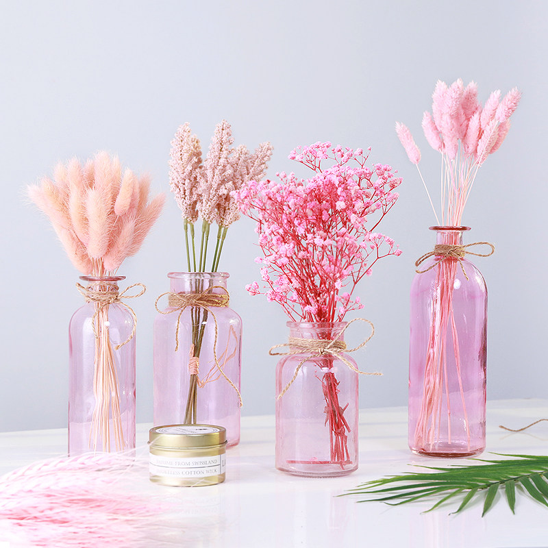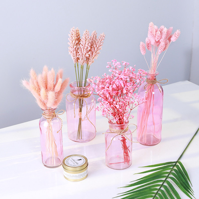 Pink glass hydroponic vase decoration Living room flower arrangement Nordic style modern flower table dry flower decoration decoration