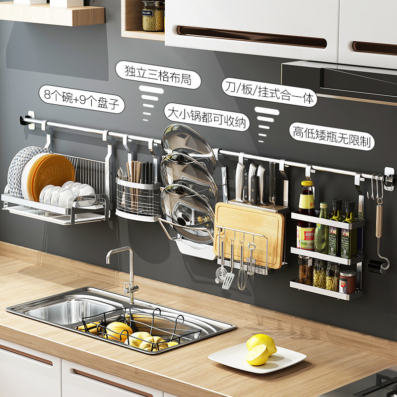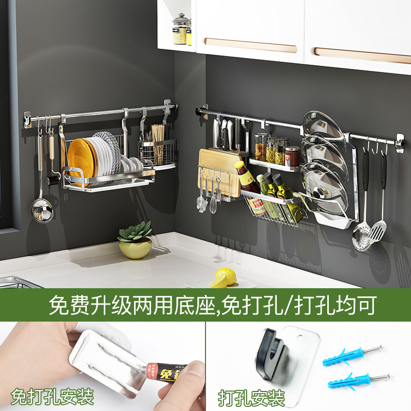 Stainless steel kitchen shelf multi-functional storage layer wall hanging bowl rack leaching rack hook kitchenware seasoning tank shelf
