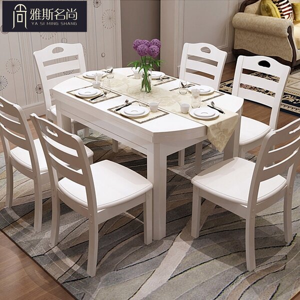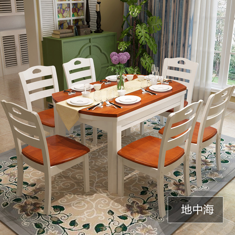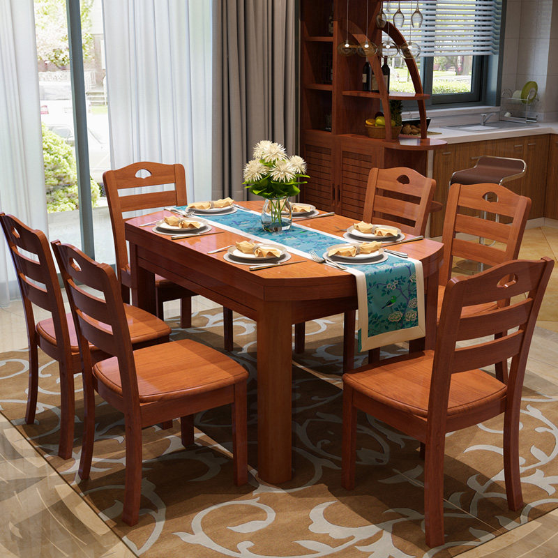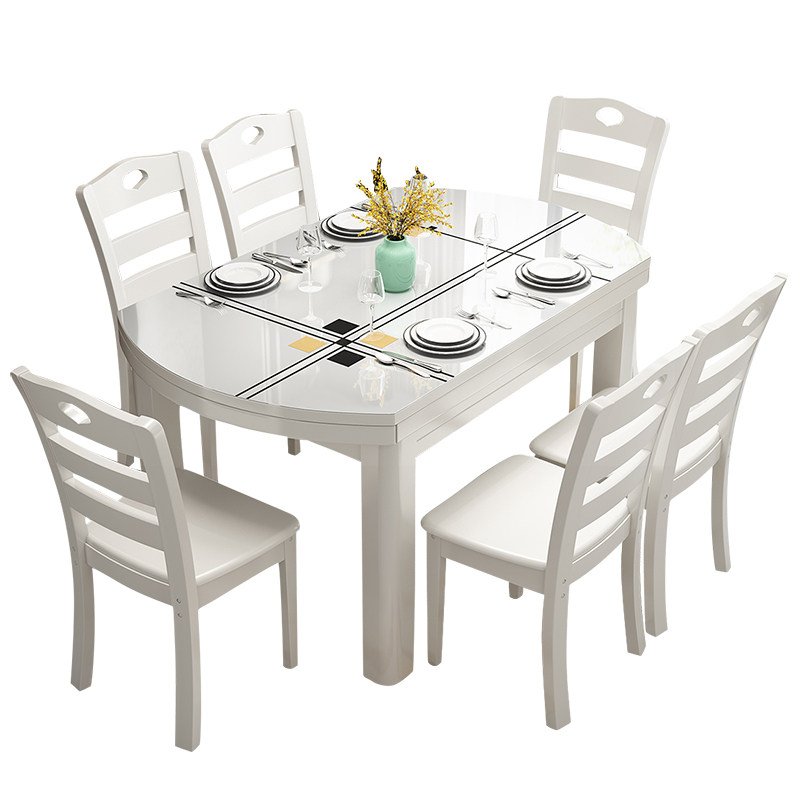Modern minimalist solid wood dining table and chair combination retractable dining table home dining table rectangular round dining table