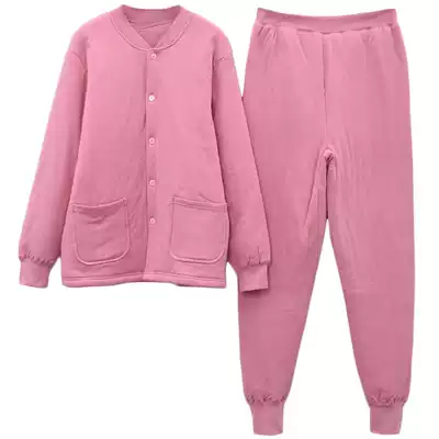 Elderly women's pure cotton heating clothes, thickened, enlarged and fattened three-layer padded cardigan, loose life year