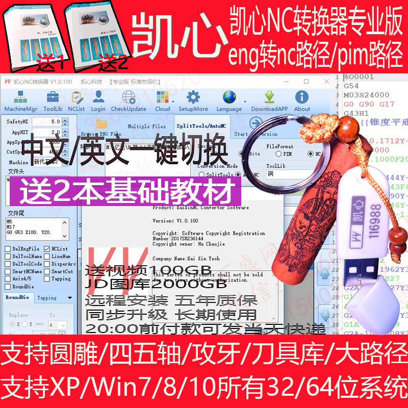 Genuine Kai-heart NC converter in English and Chinese 45-axis round carved large knife road Gardense dog engraving ENG turn NCUSB accompanying disc