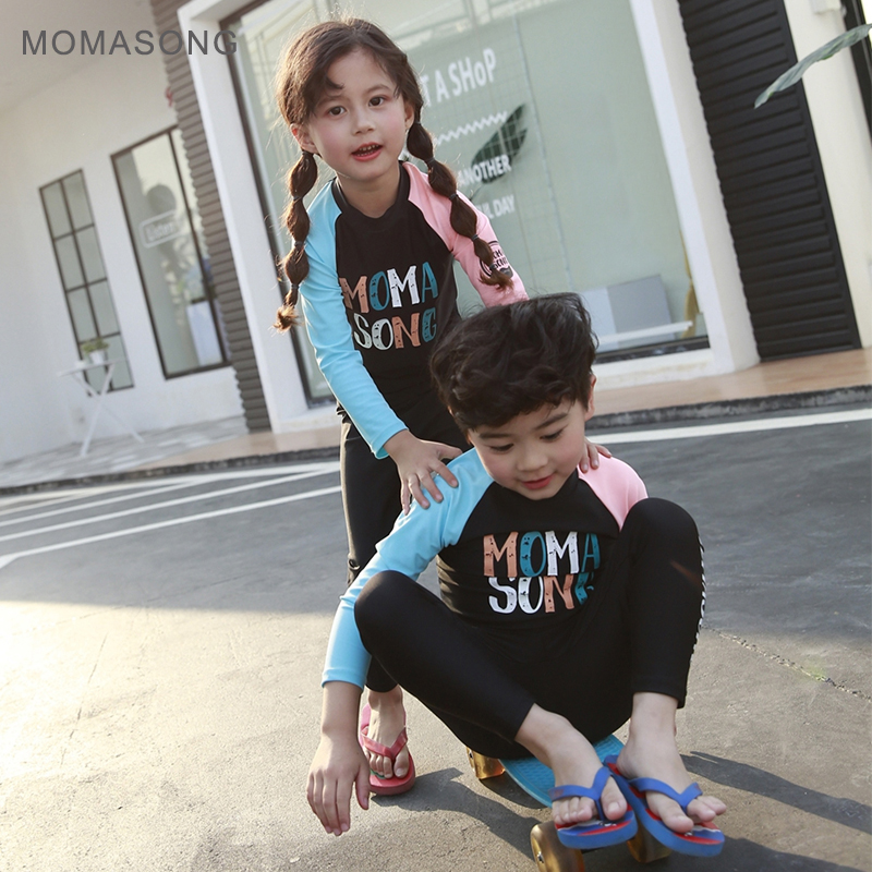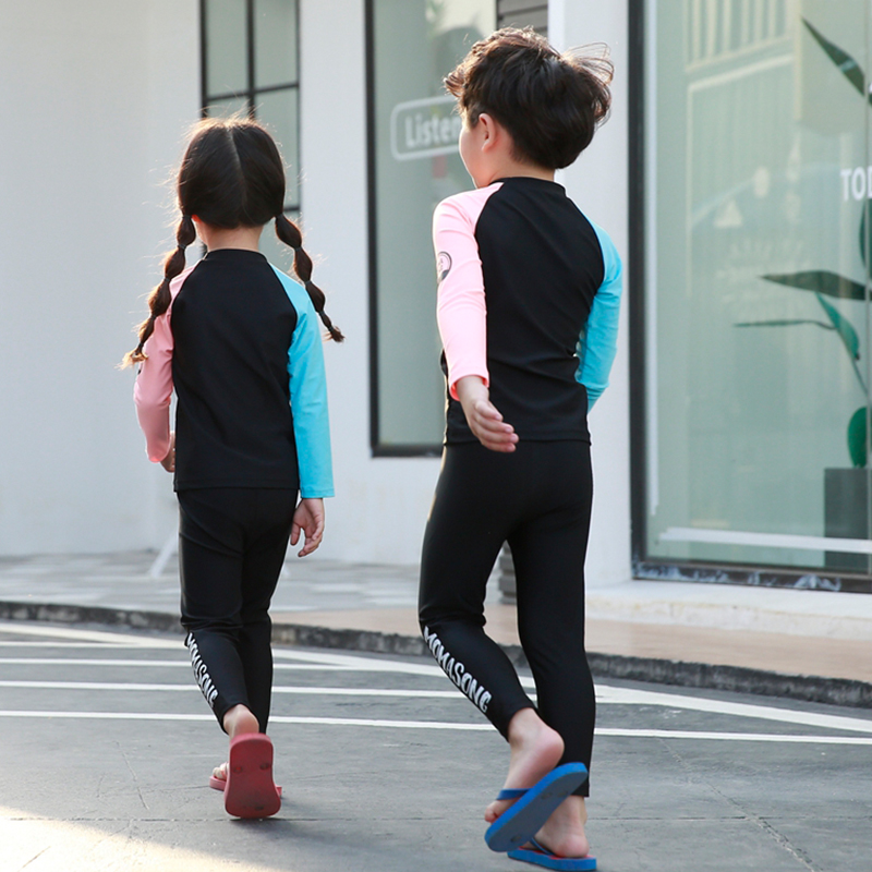 Children's swimwear boys and girls long-sleeved trousers two-piece sunscreen quick-drying Korean version 2-15 years old children's swimsuit