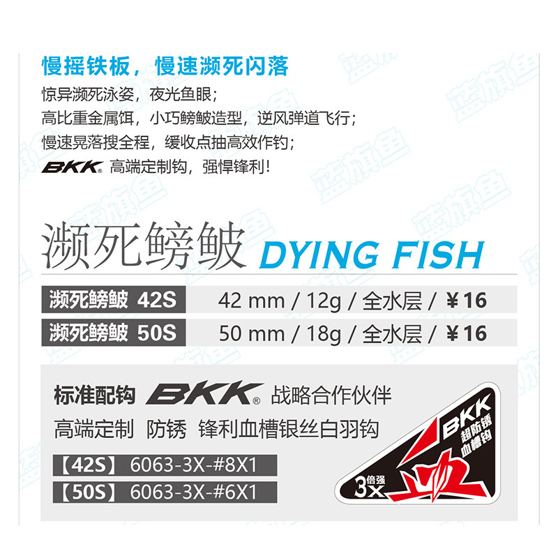 Blue Flag Fish New Pine to Death to Death; Slow Rocking Iron Plate Metal Bright Sheet Far Throw Teething Road Subbait BKK Three Benched Hooks