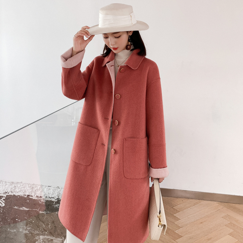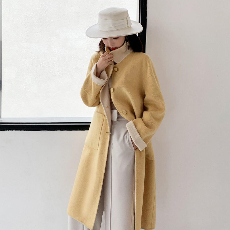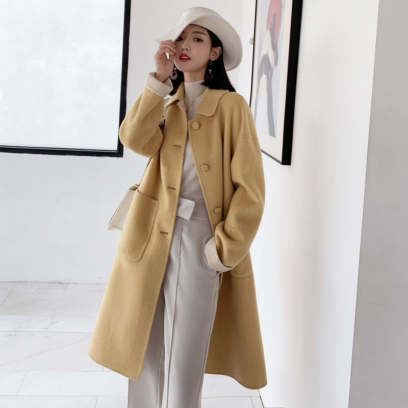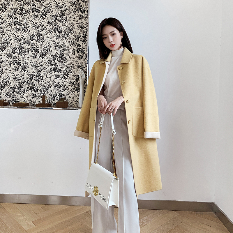 Lemon yellow hairy, what about the long version of the cocoon-style Hepburn Hairy? the coat of women's autumn and winter foreign pie