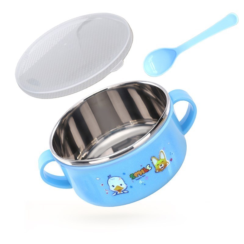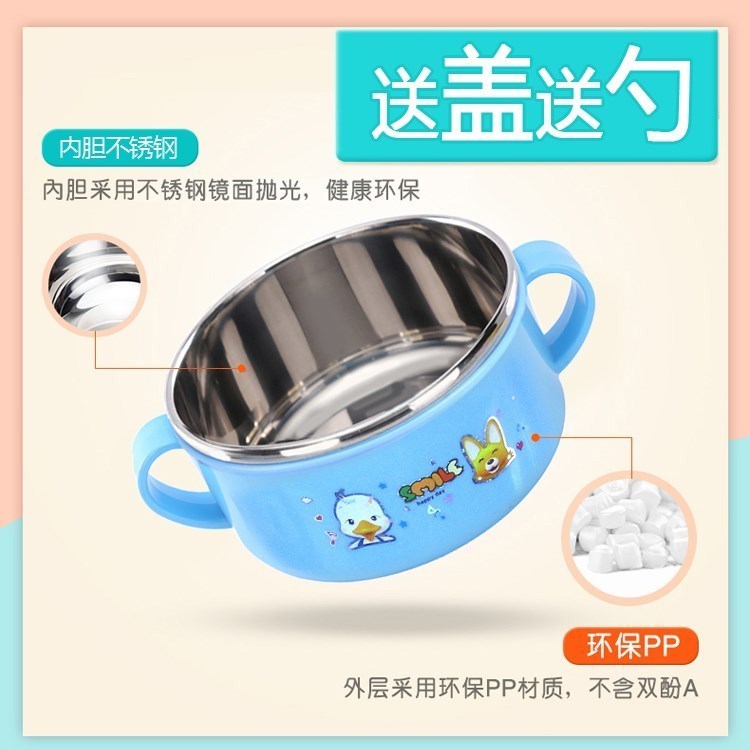 Children eat bowl baby spoon suit with lid 304 stainless steel anti - wreck anti - hot children cartoon tableware