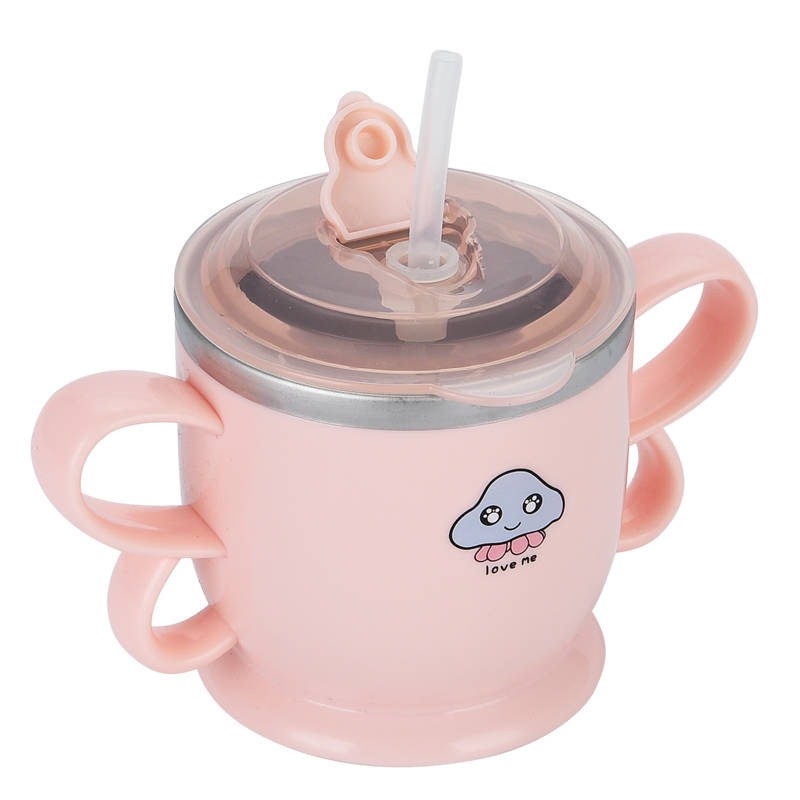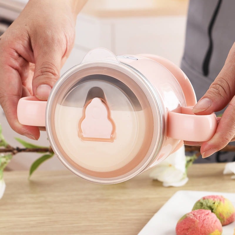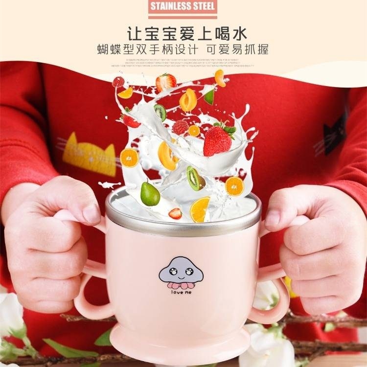 Children drinking soup bowls straw children stainless steel leakproof seal drinking dual-use kindergarten baby milk cup scale cup