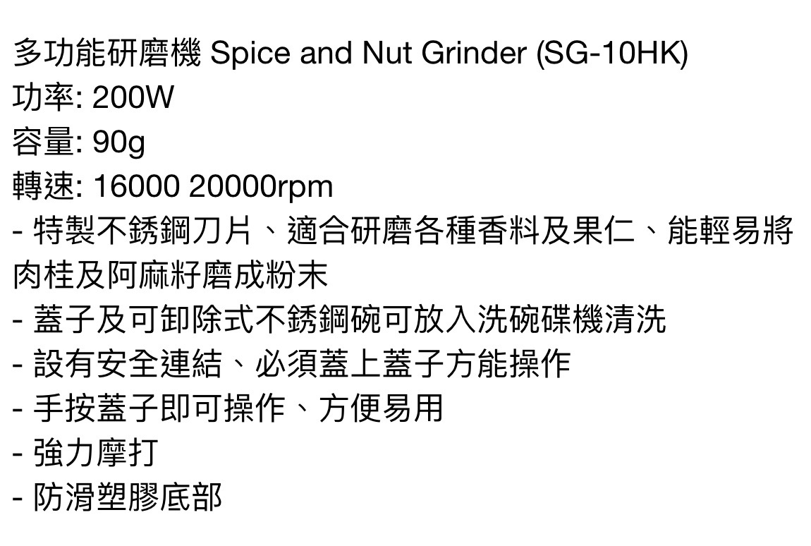 Cuisinart Meikonya SG-10 Bean Grinder Stainless Steel Household Grinding Spice Nuts Mini Spot
