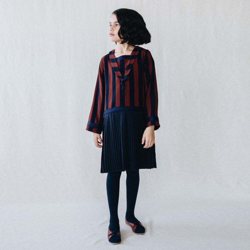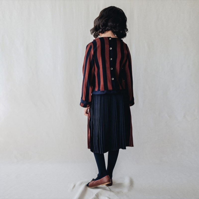 Red and blue striped shirt red and blue contrast skirt red and blue striped dress red and blue stitching shoes