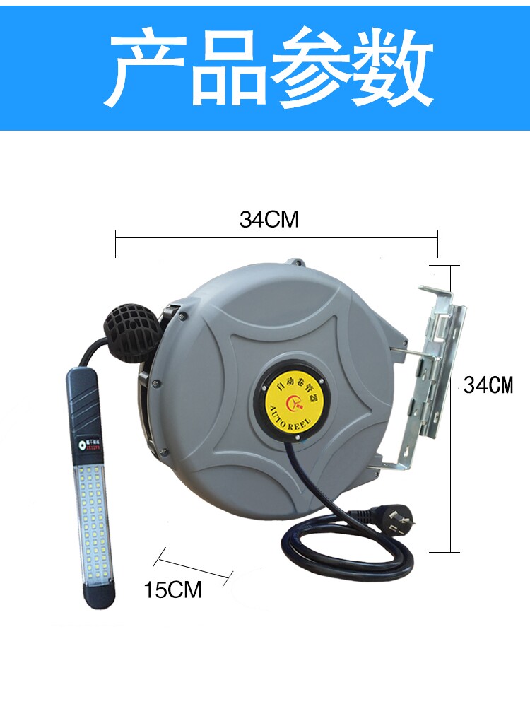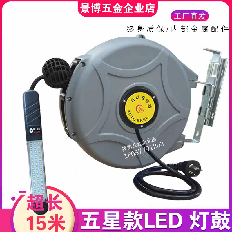 LED Light Drum Automatic Flex Winder Cable Winder Steam Repair Work Light Electronic Drum Winder Wire Rewinder