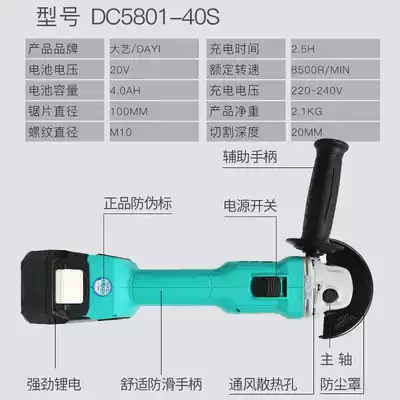 Dayi 5801 angle grinder bare skin without battery Only equipped with Dayi 5801-40S angle grinder one electric and one charge Standard equipped with Dayi 5801-40S angle grinder one electric and one charge package Dayi 5801-4