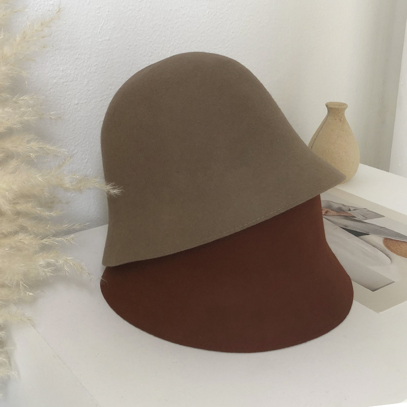 Good version wool bucket hat women's autumn and winter new small basin hat warm Korean version all-match Japanese retro fisherman hat
