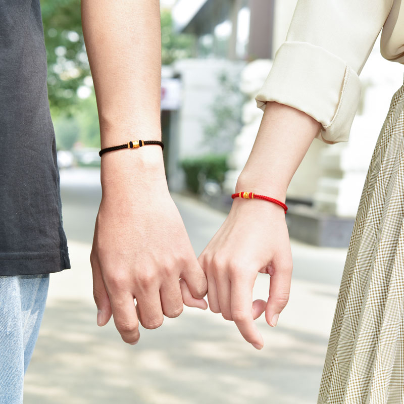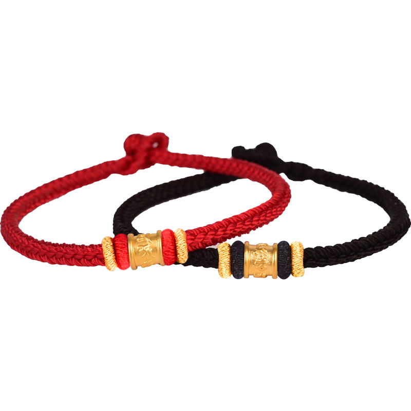 Six-character proverbs golden beads men and women couples red rope hand hand woven gold 3d hard Gold barrel bead hand rope