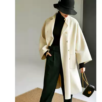 Rui time gentle elegant Chinese style flat collar jacket 100 full wool double-sided tweed coat women's middle g