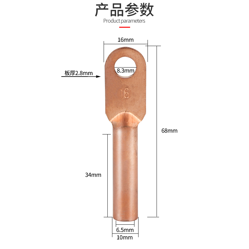 DT-16 square copper terminal block Cable terminal head Copper ear terminal block terminal nose five-star national standard class A
