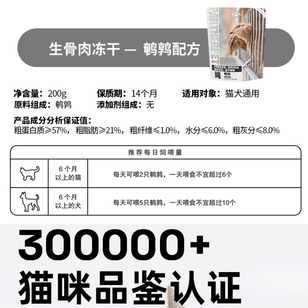 Pat Quail Freeze-dried Raw Bone Meat Pure Meat Cat Dog Snacks Freeze-dried Dog Universal Nutrition Fatter Training Grain Nol