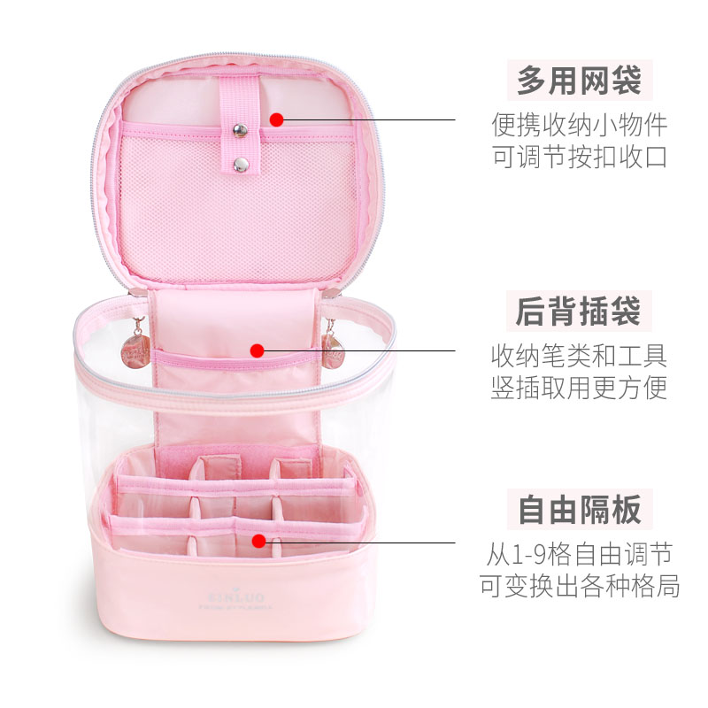 Transparent waterproof large capacity portable travel and skin care packaging box versatile hand-washing and makeup bag