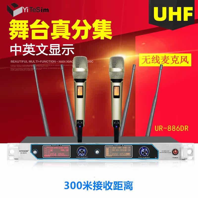 The real set wireless microphone 300 m U - 724 professional stage U - section tsunami call microphone double display in English