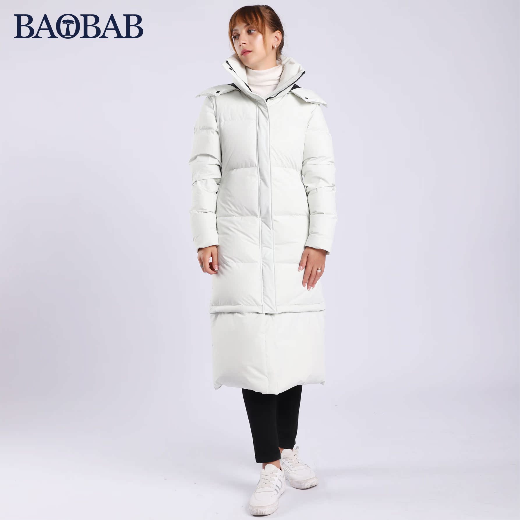 BBAOBAB long version down jacket with woman long version over knee thickened with cap white duck suede winter warm cotton coat jacket