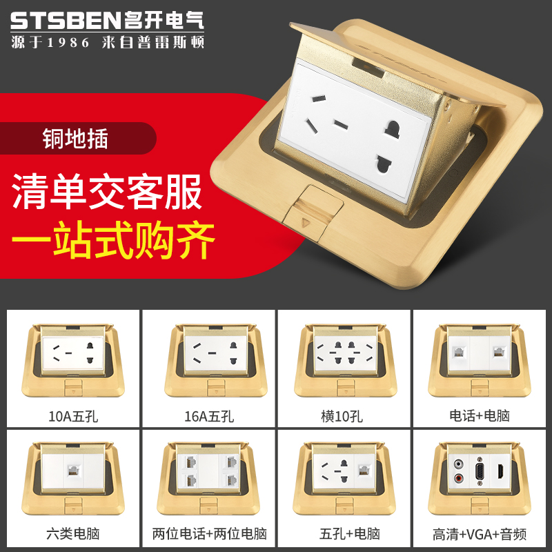 Bounce-type all-copper floor plug-in waterproof 5-hole power floor plug-in Internet Internet interface copper ground plug 5-hole ground socket