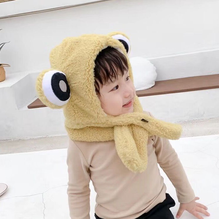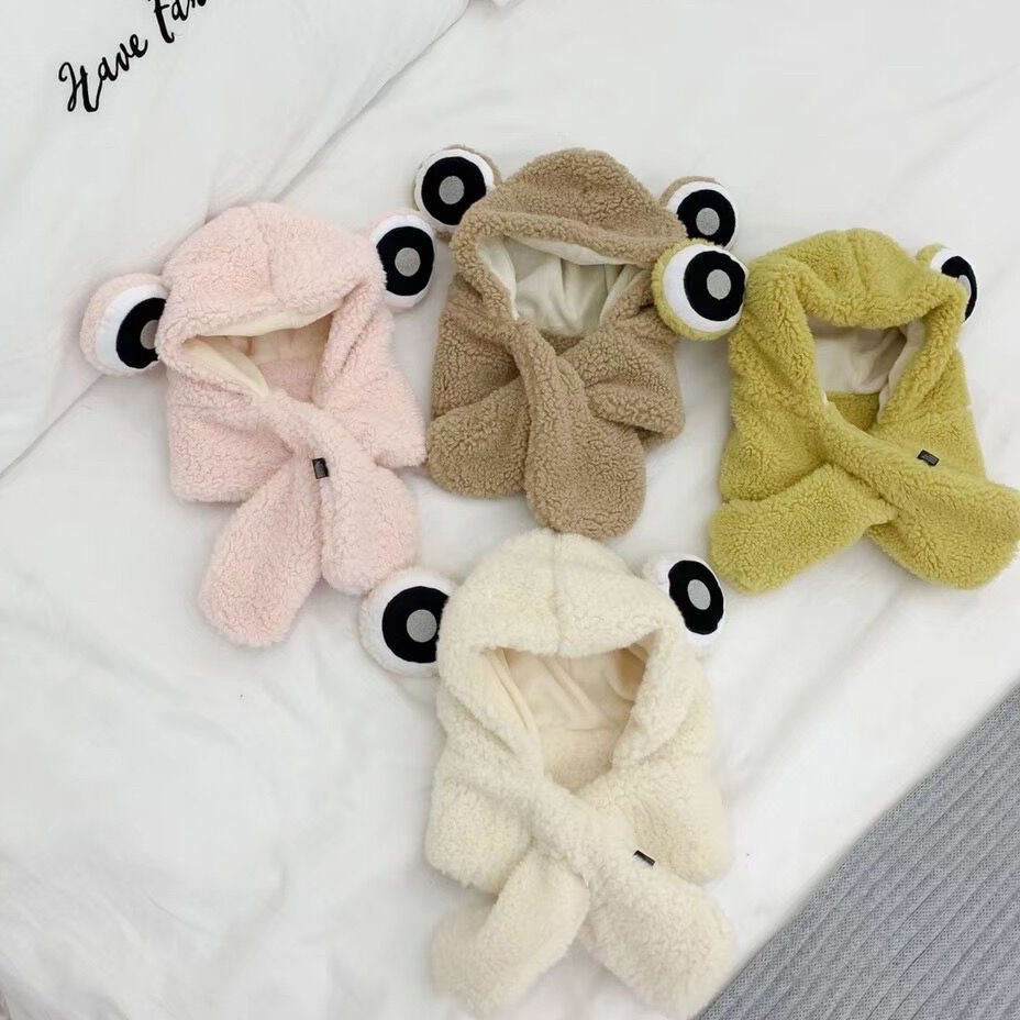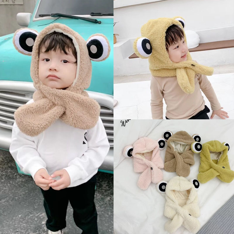 Children's hats, girls, baby ear protection hats, cute frogs, girls, boys, hats, autumn and winter, baby scarves, all in one winter