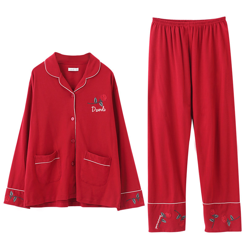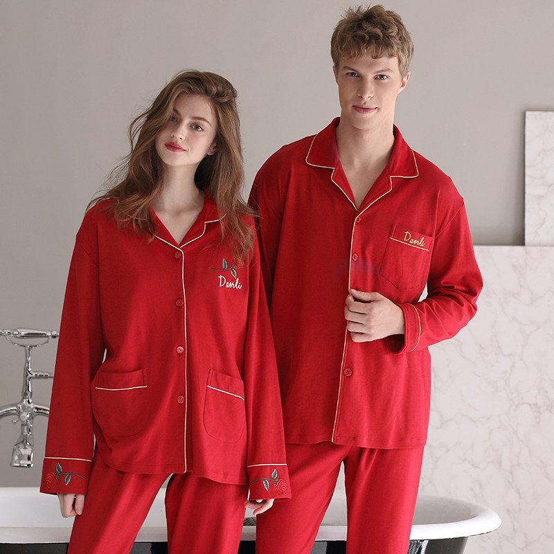 Daherli couple pajamas spring and autumn pure cotton red festive wedding newlywed men and women cotton home clothes set