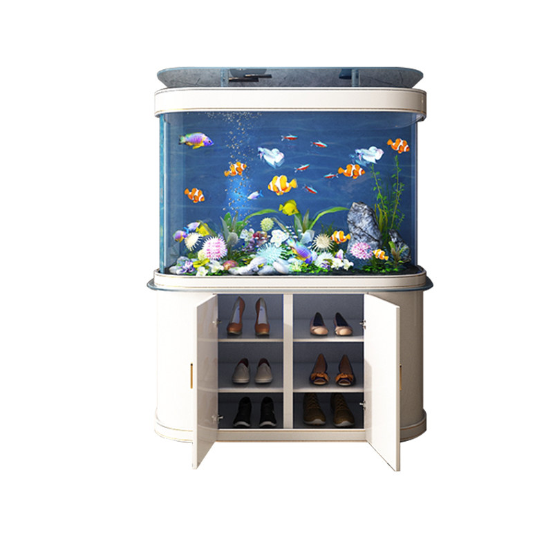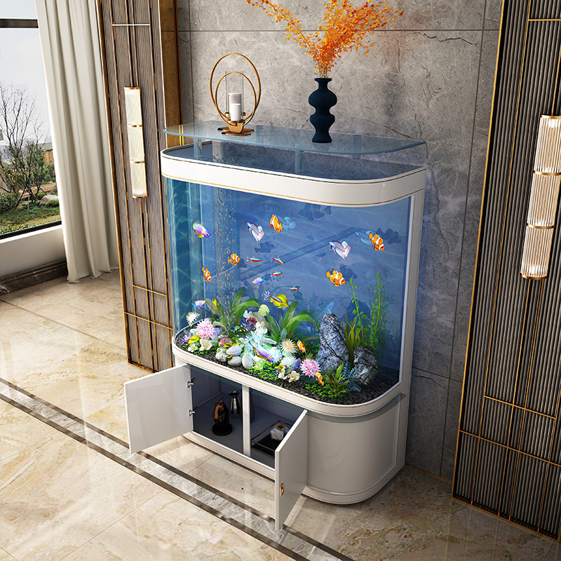 Light luxury fish tank aquarium bottom filter living room small, medium and large ultra-white floor-to-ceiling free water change European-style shoe cabinet goldfish tank wall