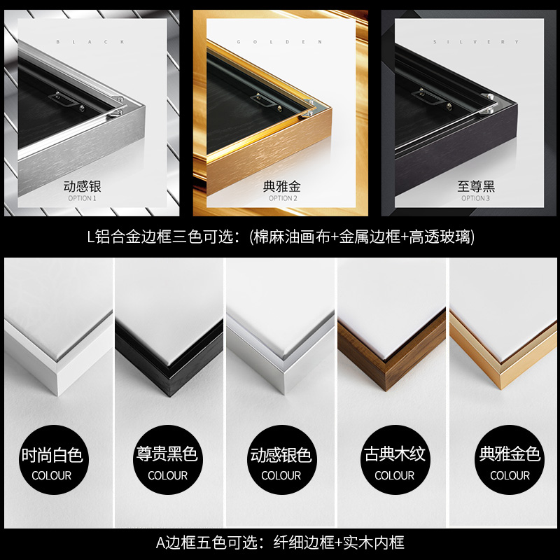 Textured canvas picture AA (PS environmental protection picture frame textured canvas) Textured crystal porcelain picture LB (textured canvas, metal frame, high-transparency plexiglass)