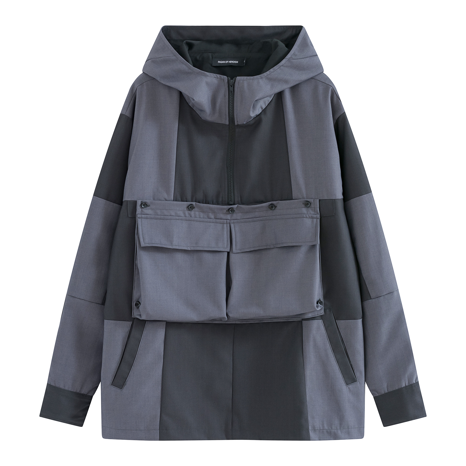 POH 19AW multi - disciplinary piece piece multi - pocket loose gray thick cotton T men spring Guoshi street sub - coat
