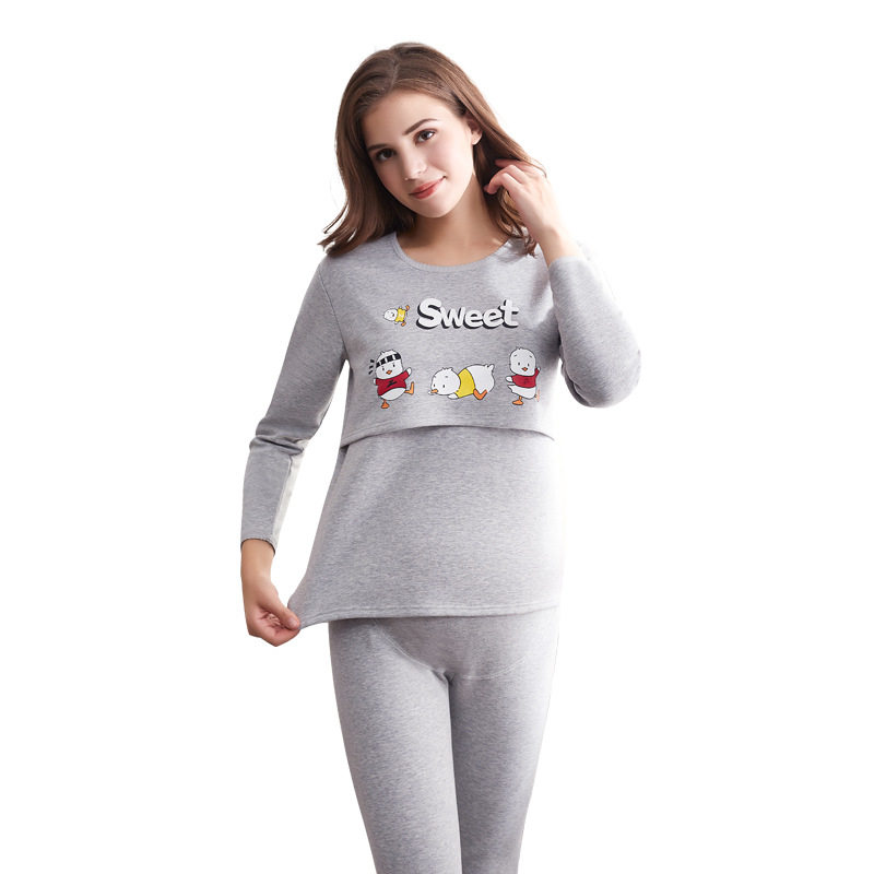 Pregnant women's winter clothing suit laced with velvet warm blouse postpartum breast-feeding winter pregnant with thickened lingerie home