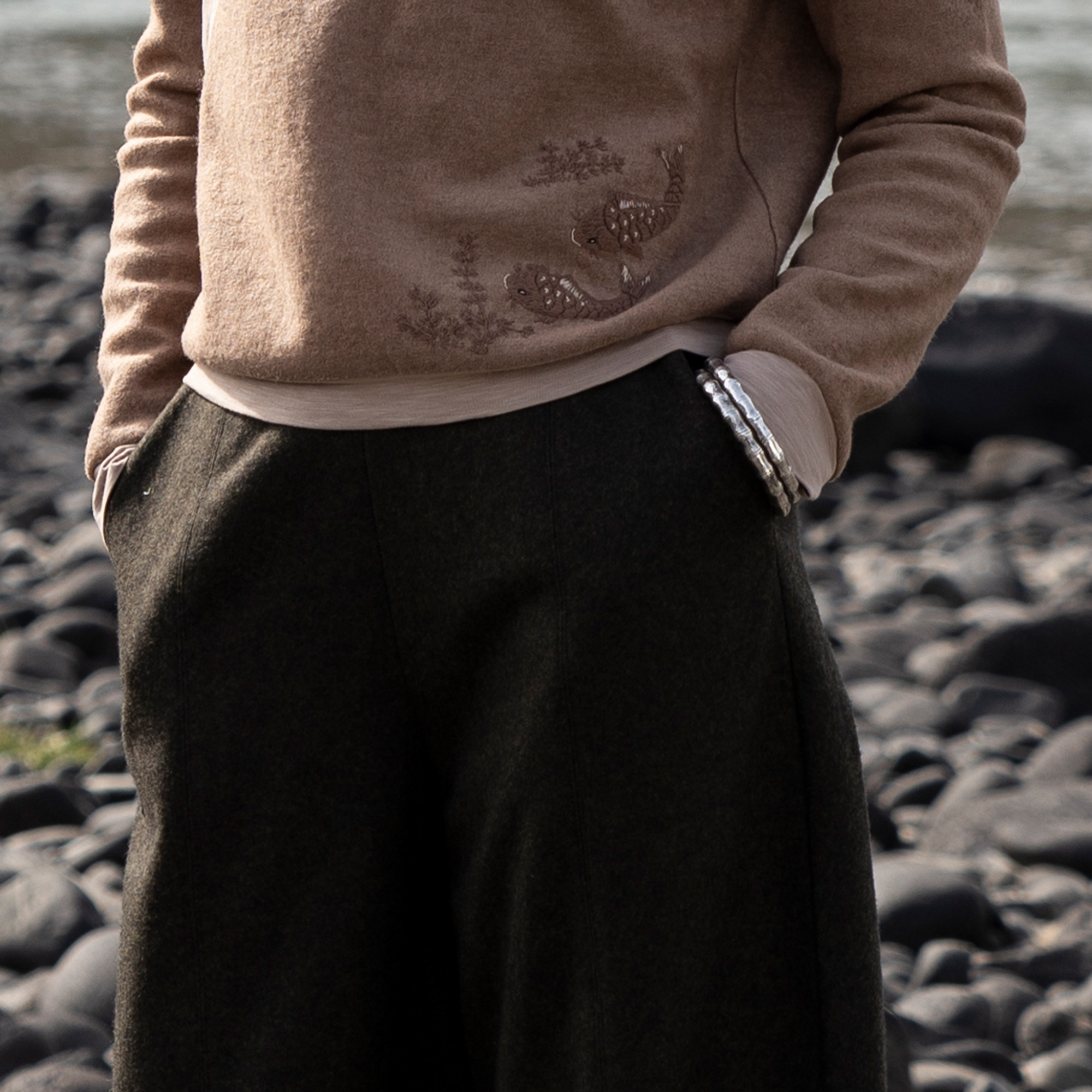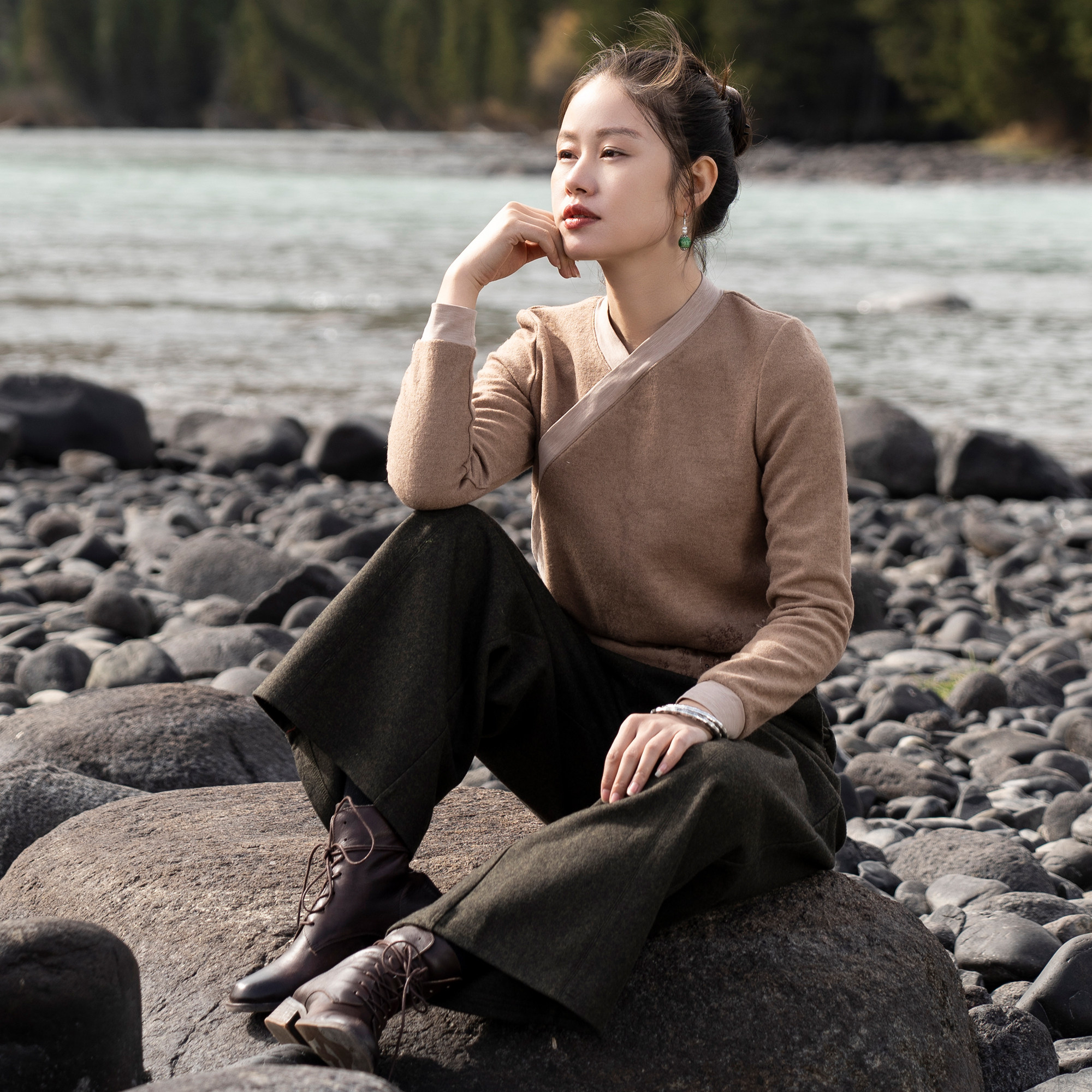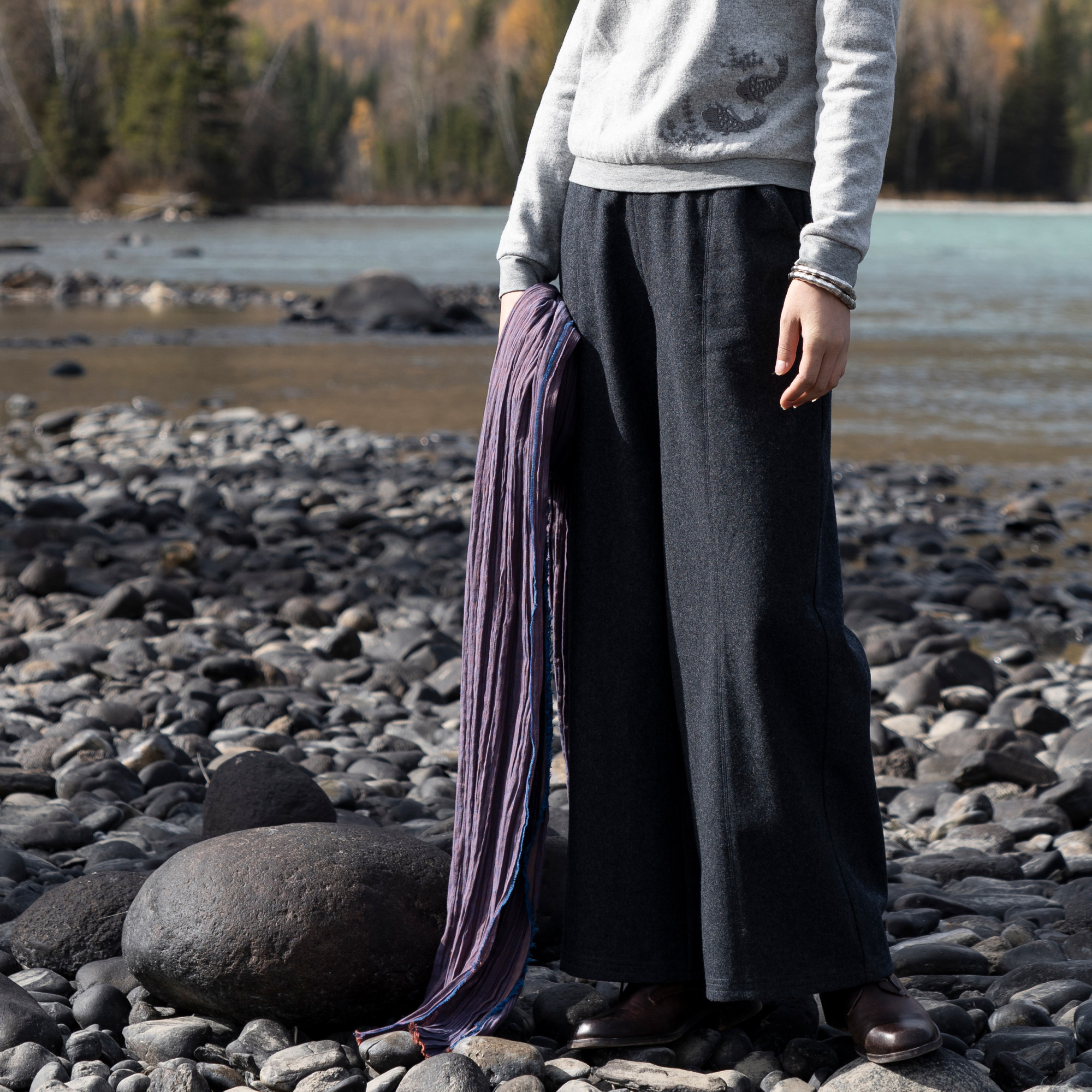 (Go to the distance) Moshang Huakai wool straight-leg casual pants women's loose wide-leg pants drape trousers