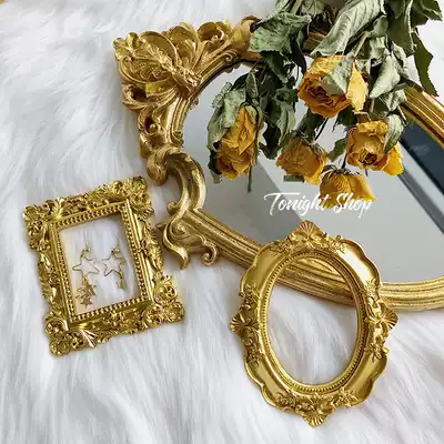 Retro European-style golden mini resin embossed small photo frame ins jewelry shooting props Nail art shooting background