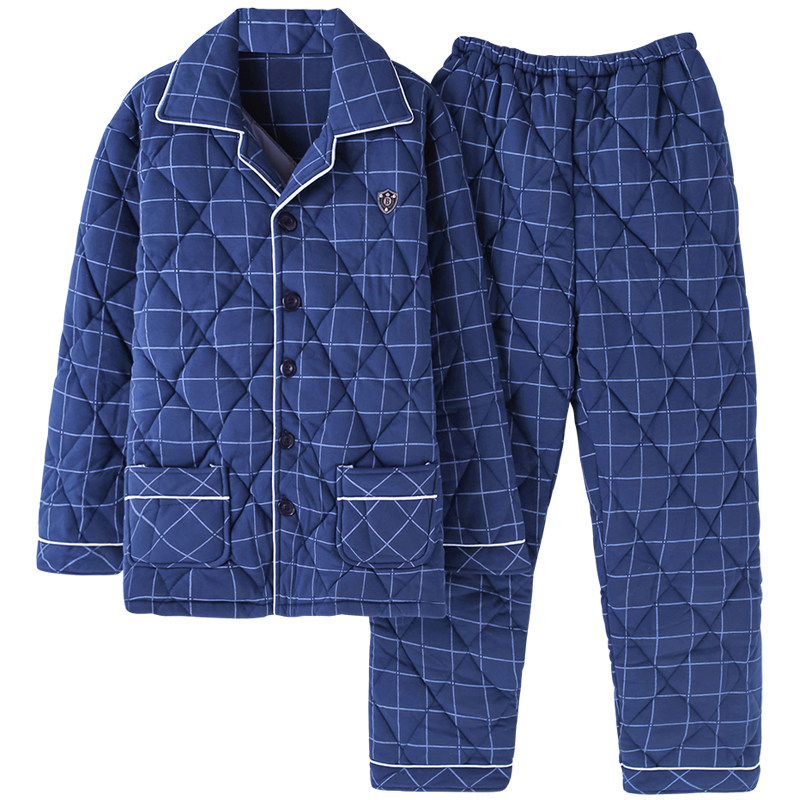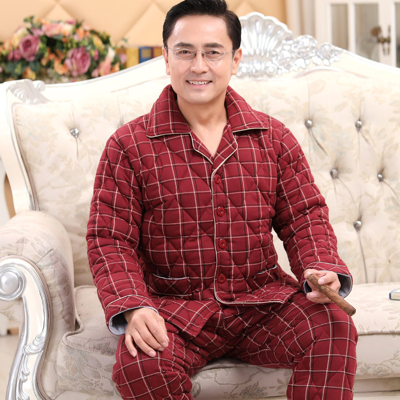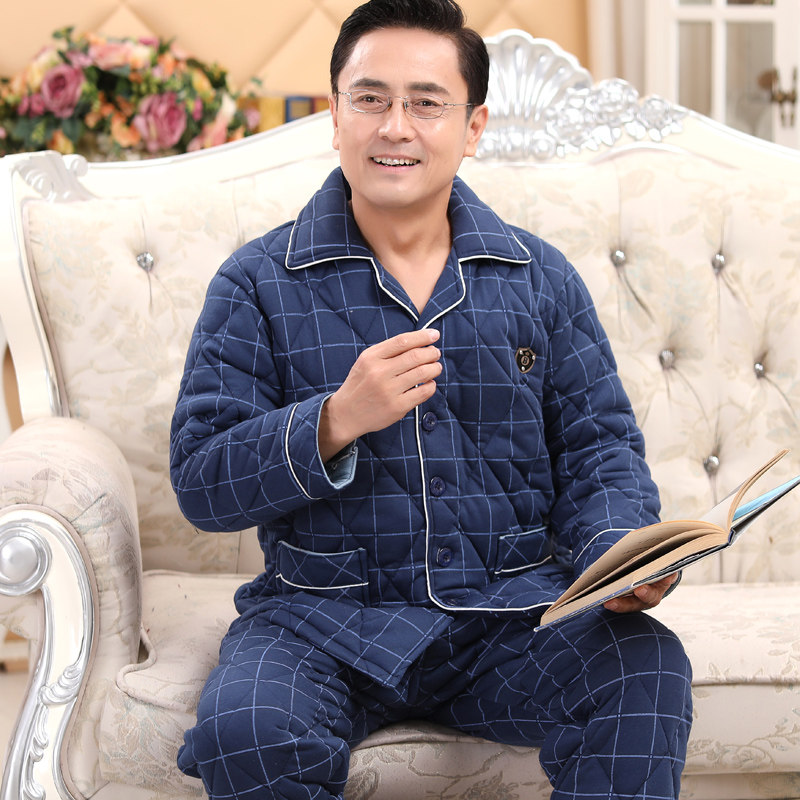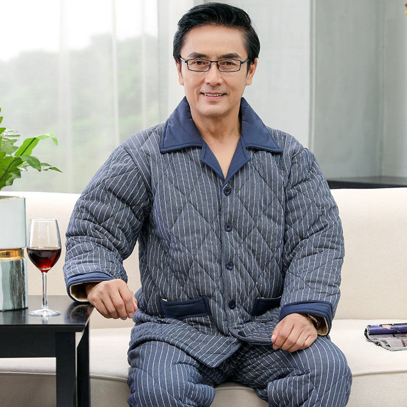 Winter middle aged men's men's pure cotton bunk cotton sleeping clothes autumn and winter day three layers of thickened warm dad cotton padded jacket