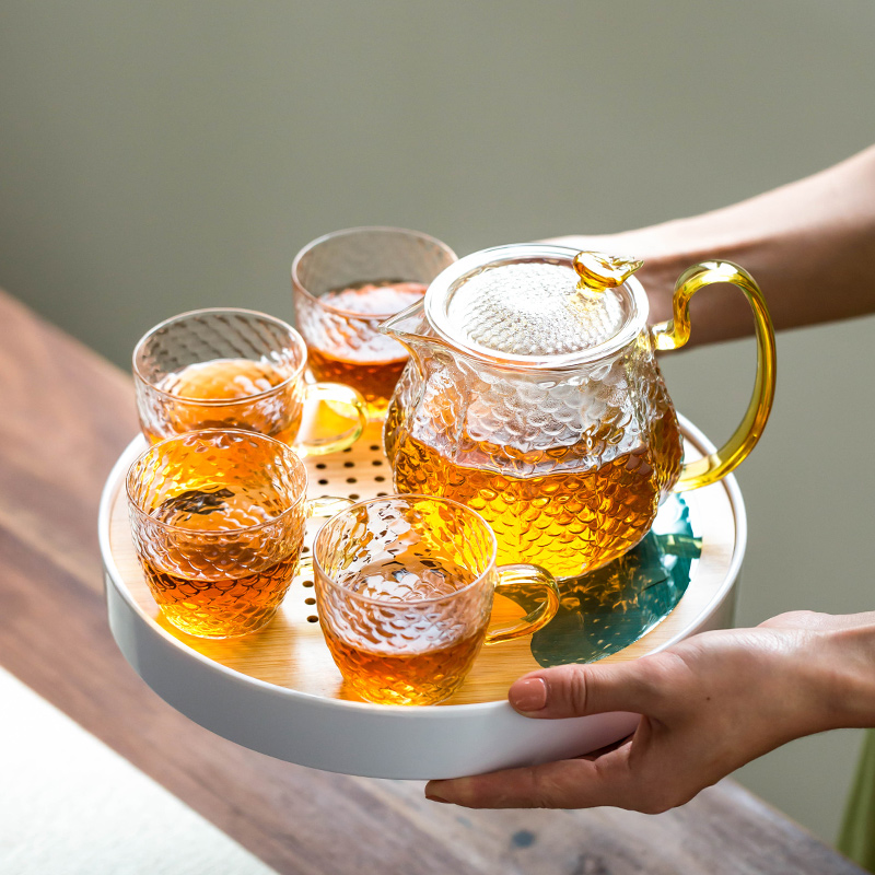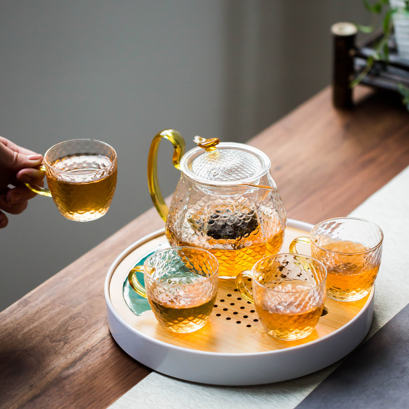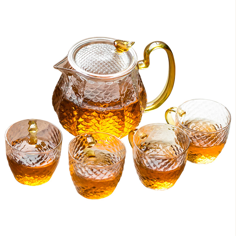 Japanese-style transparent glass tea set set household small set simple dry teapot filter high temperature heat-resistant tea cup