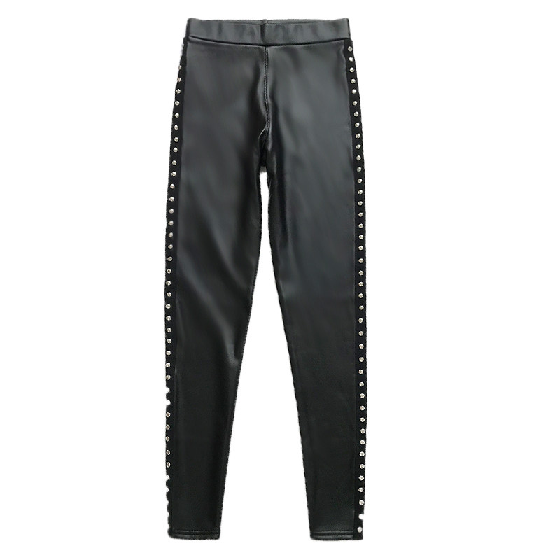 Inside pants women wear 2021 autumn and winter fashion velvet thickened rivet leather pants Tight thin feet magic pants tide