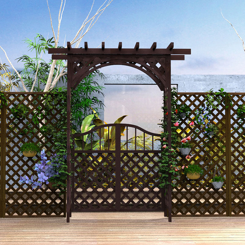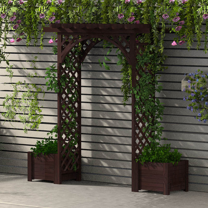Flat-top arch flower stand climbing pergola outdoor villa courtyard anti-corrosion carbonized solid wood bracket flower pot large grape rack