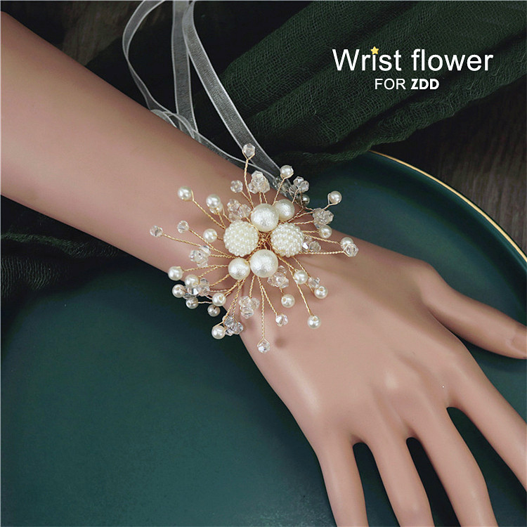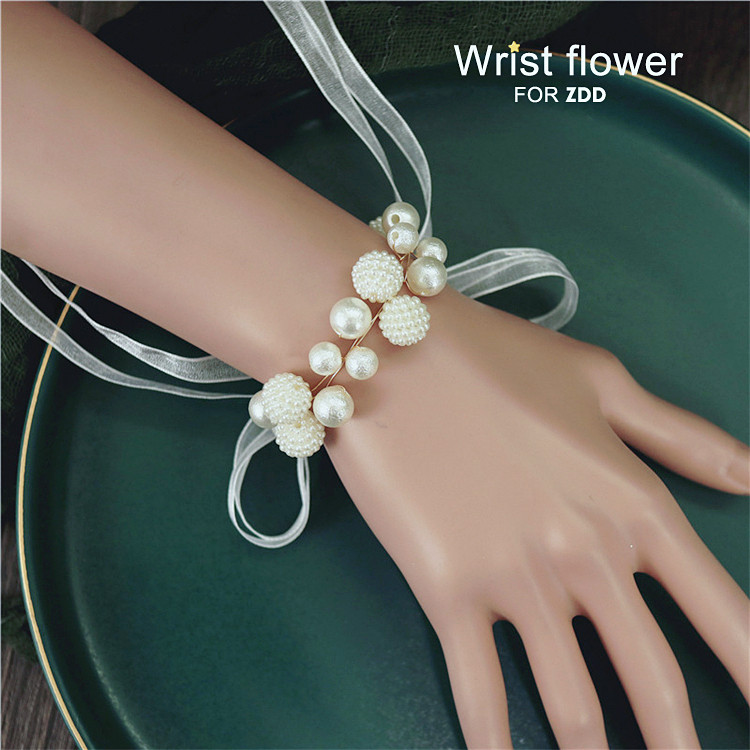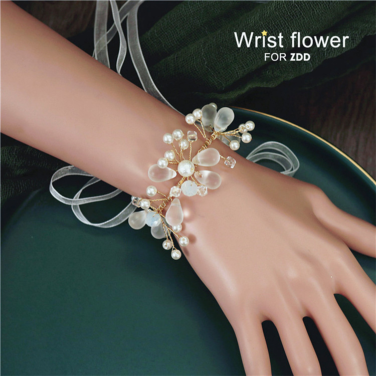 Han Style Brief Imitation Pearl Bridal Bridesmaid's Wrist Flower Sisters Wedding Bracelet Children Perform Hand in hand to tie flowers