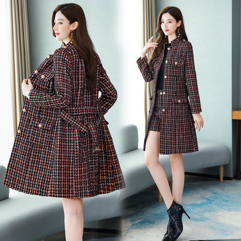 Gross shorts suit Goddess Fan Yang sends two sets of 2021 autumn and winter new Korean version of small fragrant wind medium long version coat