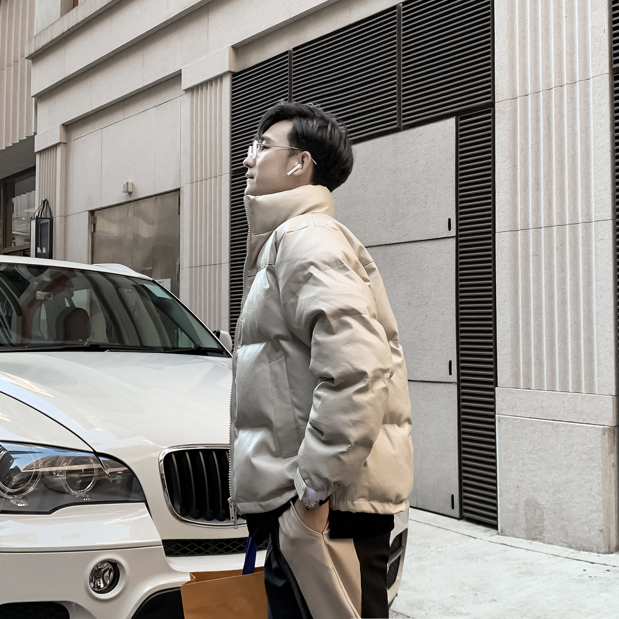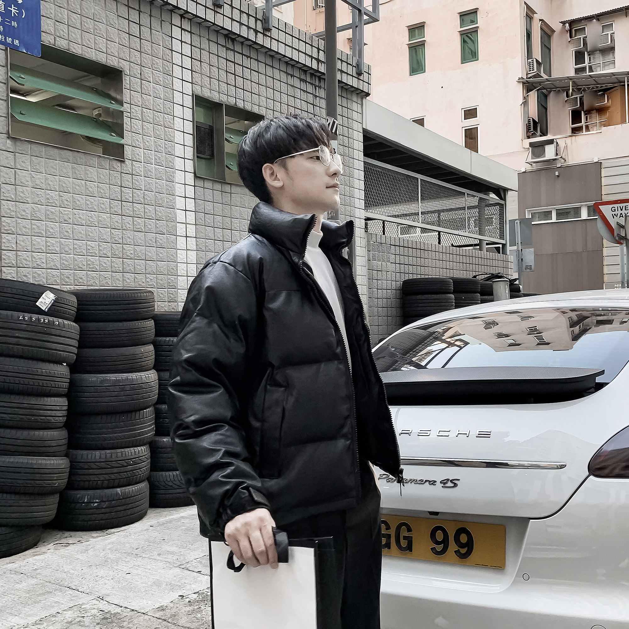 (VERA MENS) cotton coat men's short ins winter Korean version of the jacket thickened loose PU leather bread cotton clothing