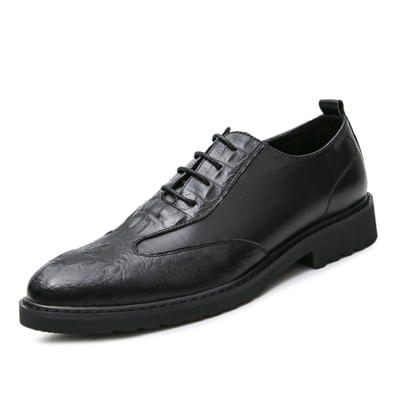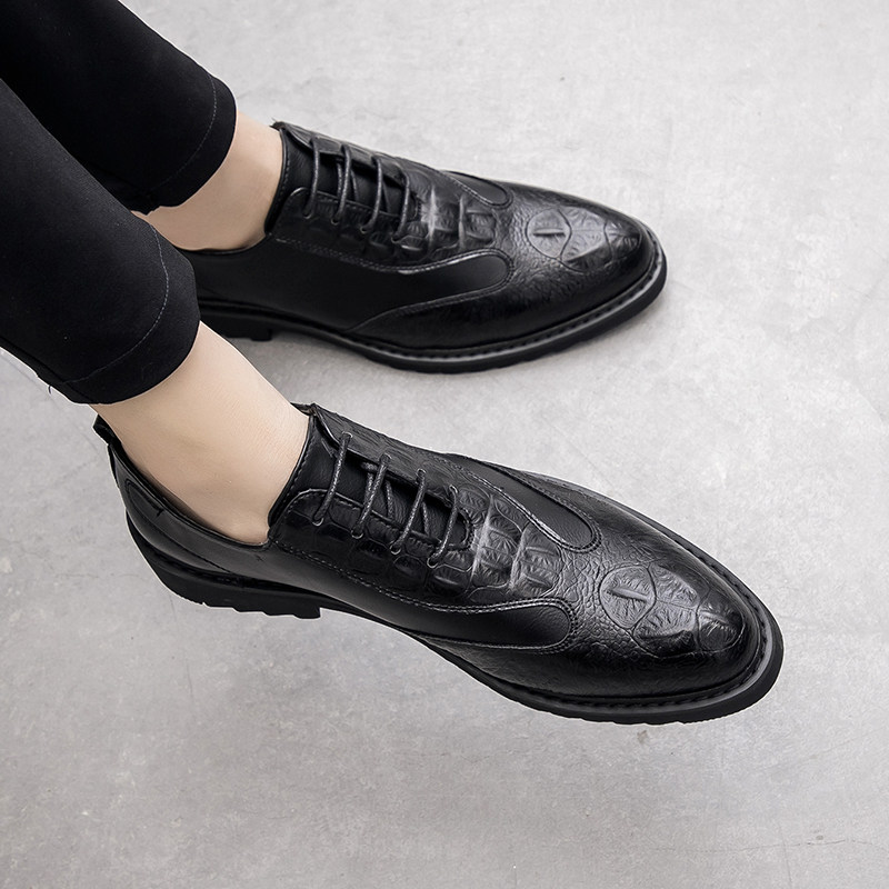 Hong Kong tide brand crocodile pattern leather shoes men's genuine leather inner high Korean version casual formal wear British business pointed men's shoes
