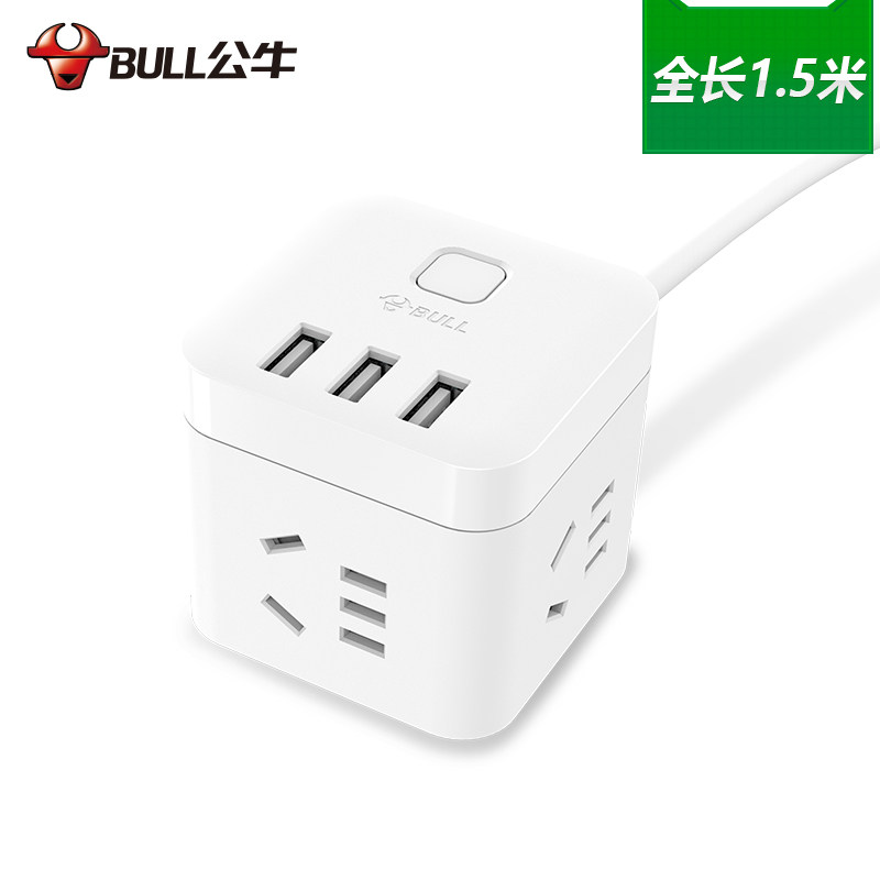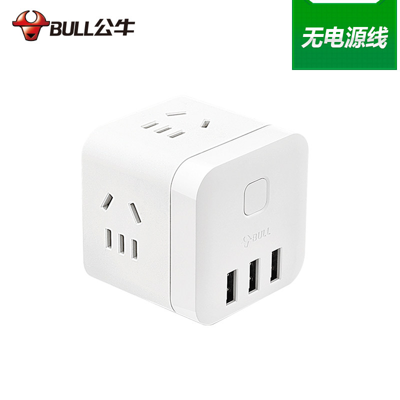 Bull USB smart socket black cube electro plug mini multi-function fast charging cable small white plug
