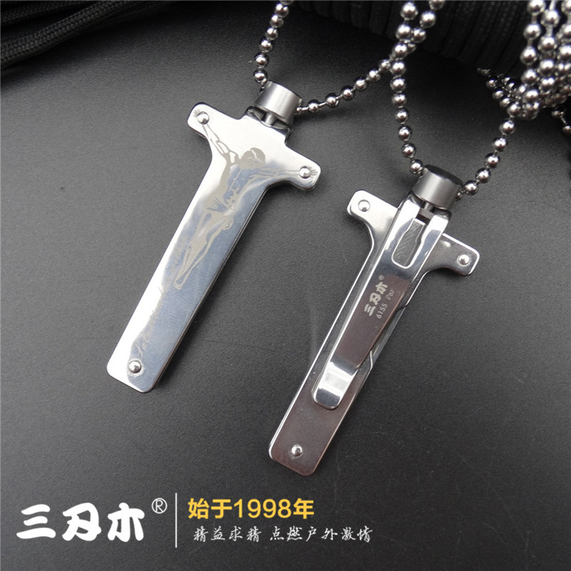 Three-edged wood 6155 pendant knife creative necklace small knife open delivery small knife with portable knife cross styling handsome