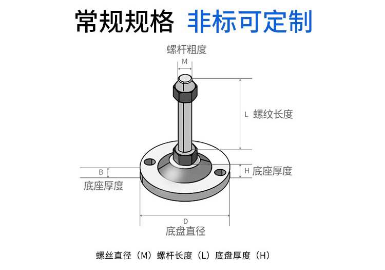 Heavy-duty non-slip shock-absorbing foot buffer foot pad fixed foot screw adjustable machine tool support foot D40 D50