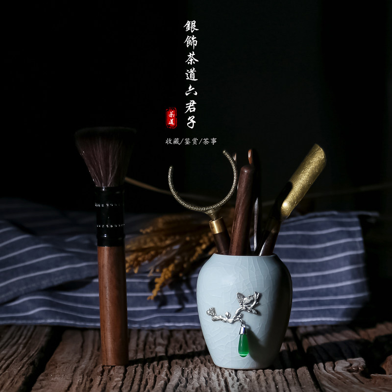 Ceramic tea ceremony Six gentlemen set Ebony solid wood household Kung Fu tea accessories Tea bucket Tea needle Tea clip Tea spoon