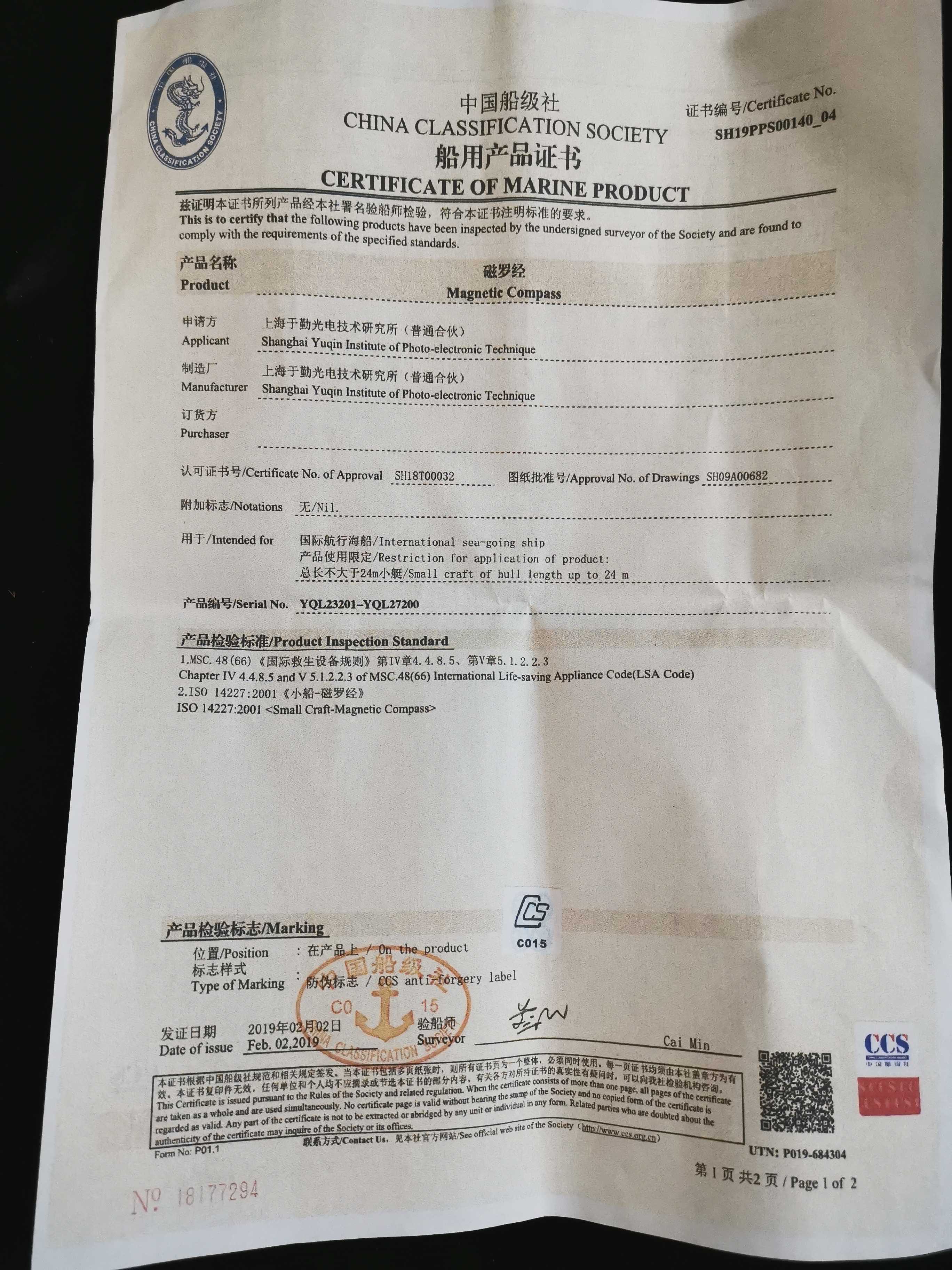 CCS certified marine magnetic compass