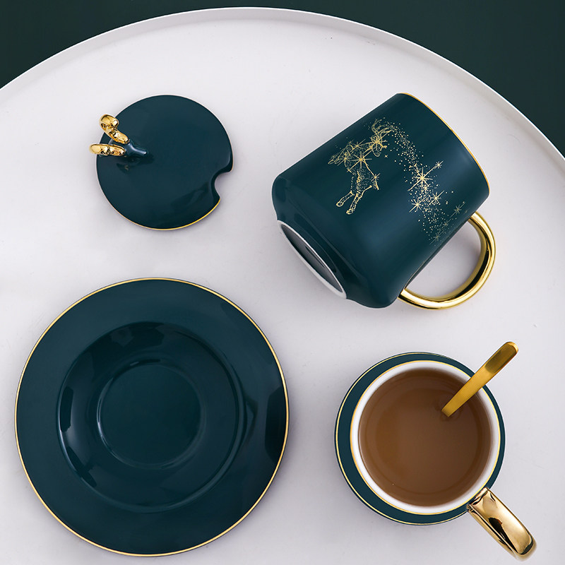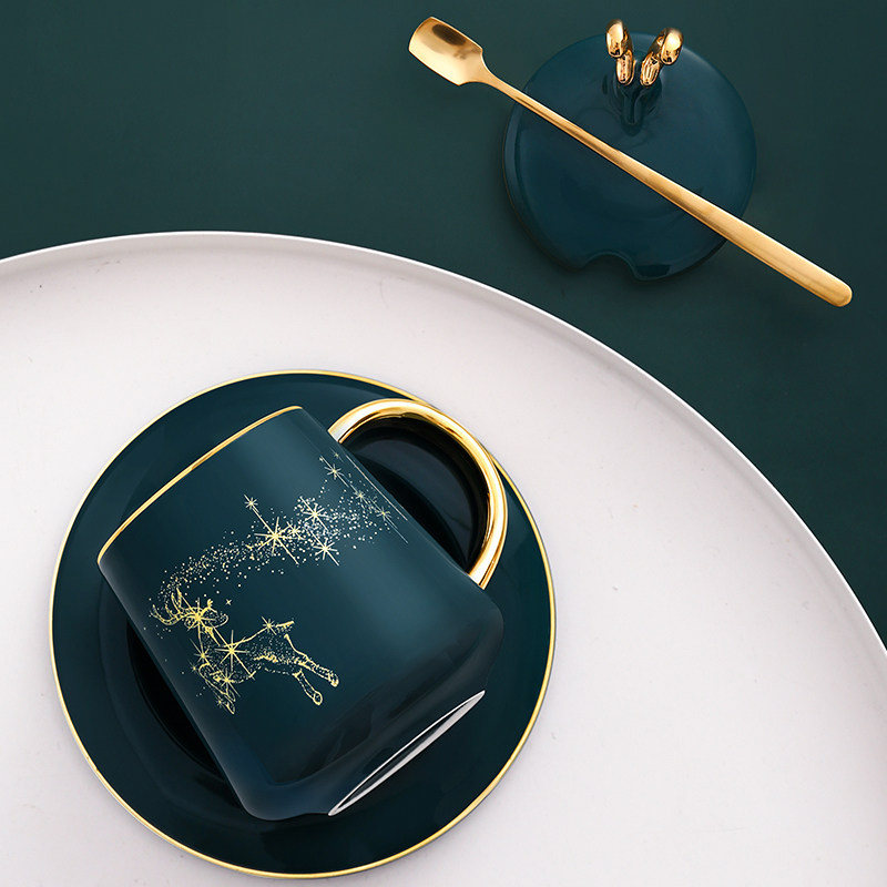 Nordic Mark Cups ceramic cups with lid spoons personality creative tide lovers light lavish coffee cup sauces