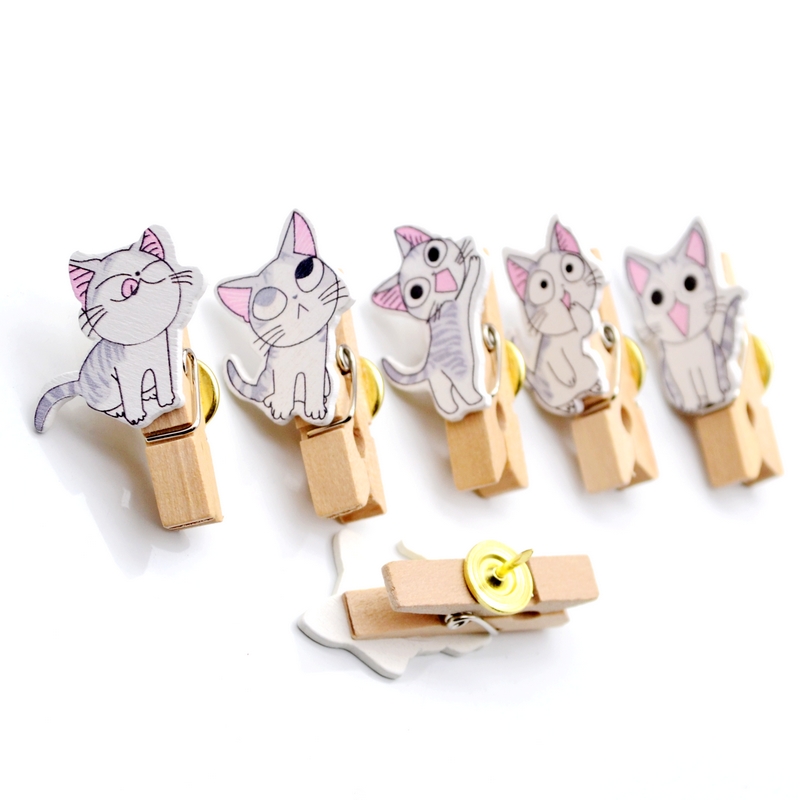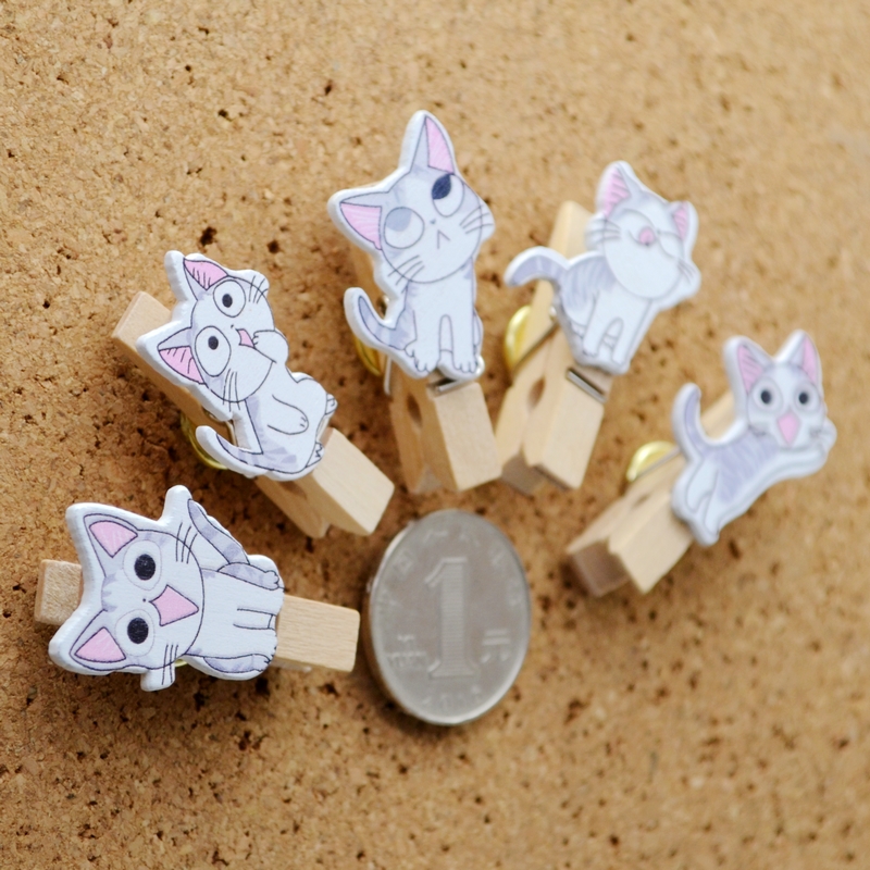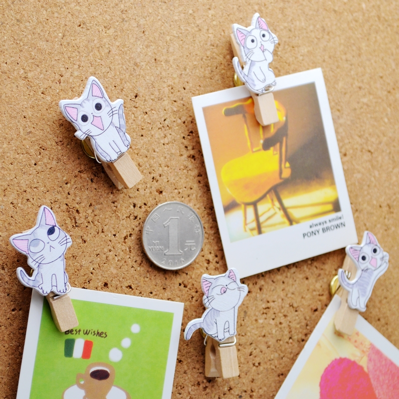 5 5 colors 5 grains without injury photo cheese Cat Wooden Clip Press Nail Wall Nail Work character Color Nail Creative Cork big Head Tupin