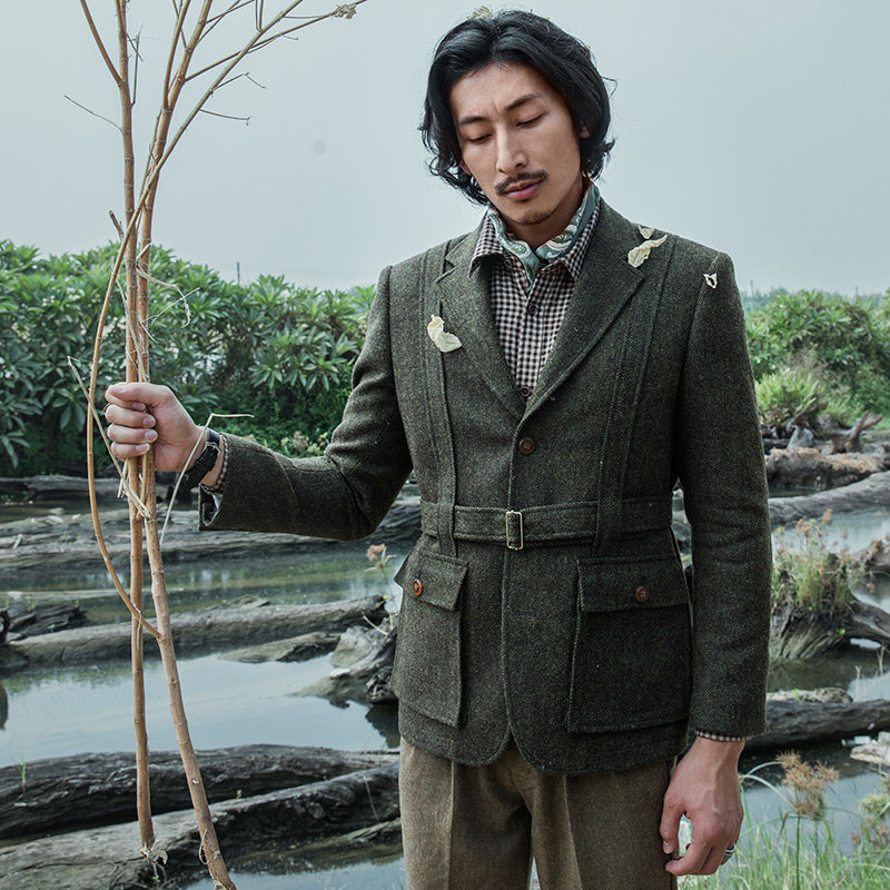 SOARIN original designer men's woolen suit retro British style casual slim safari jacket
