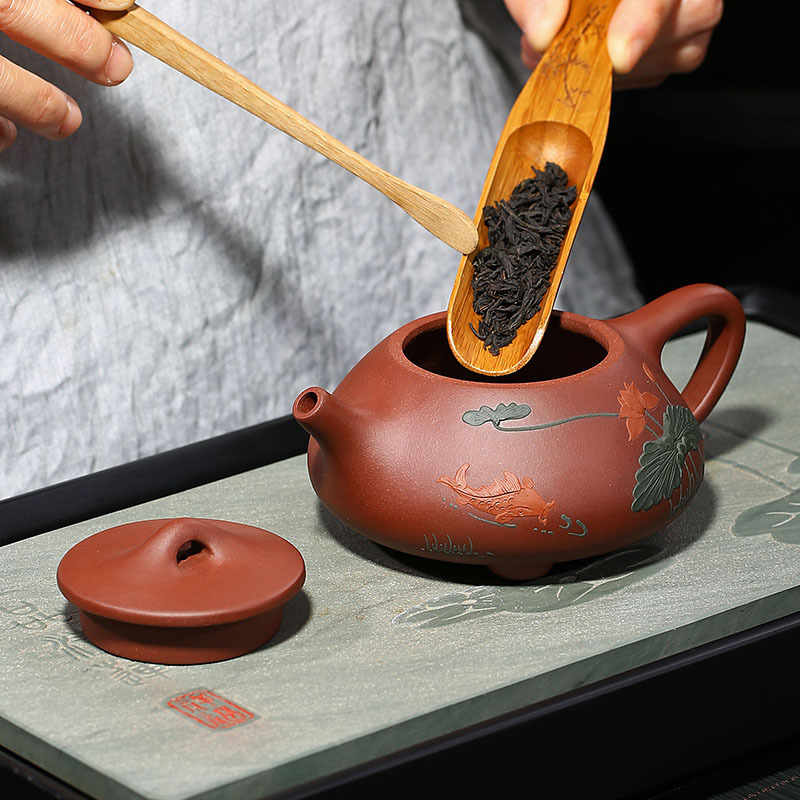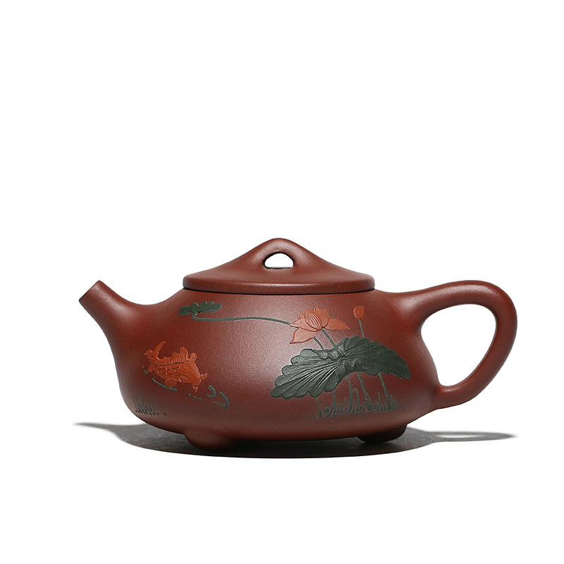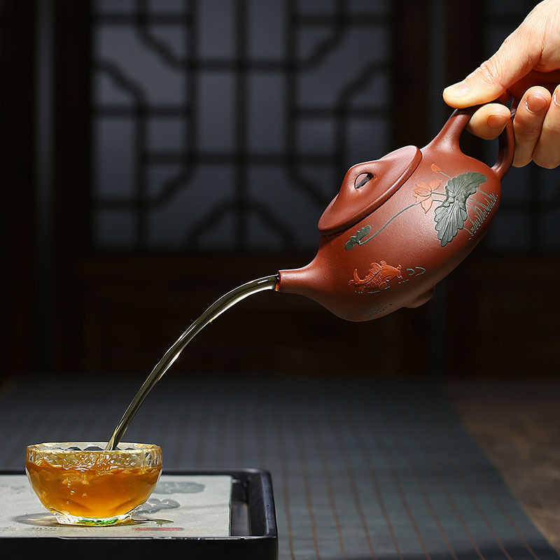 Lixing Purple Sand Lotus Flower ladle pot Yang Fei Nang pure handmade clay painting lotus leaf fish pot hole tea set Home Bubble Teapot