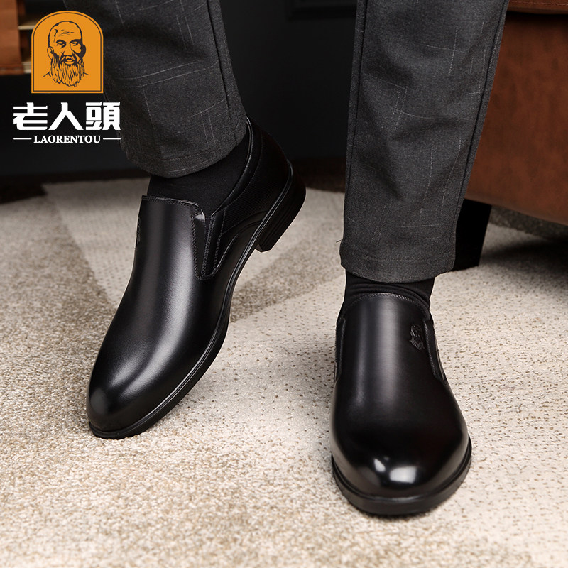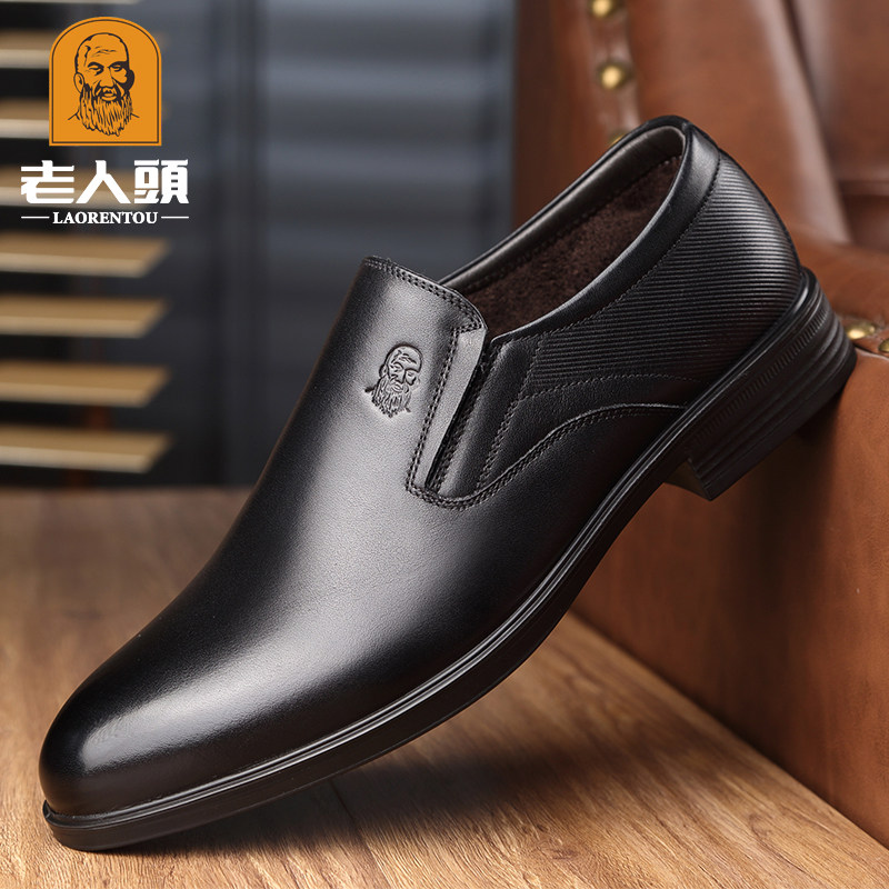 Old man's scalp shoes men's leather winter plus velvet men's shoes business casual shoes men's middle-aged dad shoes to keep warm