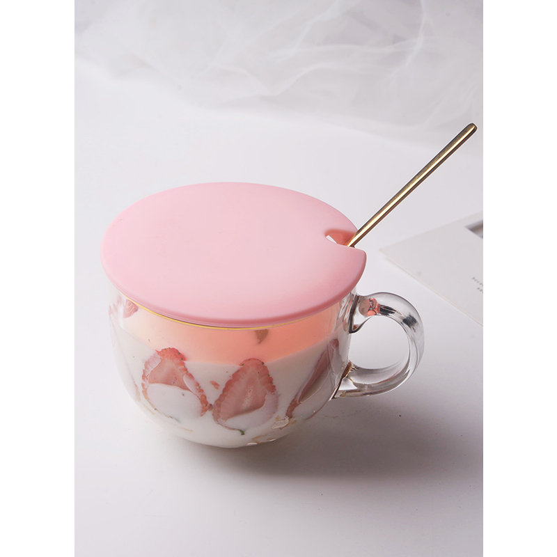 Phnom Penh transparent glass home female cute ins wind Nordic hot milk lid breakfast cup oatmeal European cute
